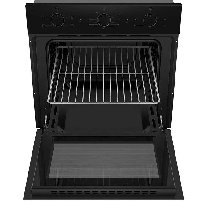 В комплектацию входит духовой шкаф, решетка, противень и документация. При этом внутреннее покрытие выполнено из эмали легкой очистки, что значительно упрощает процесс уборки после приготовления пищи.