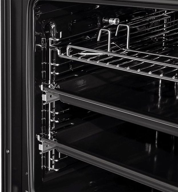 Объем духовки составляет 76 литров, что позволяет приготовить большое количество пищи одновременно. Внутреннее покрытие духовки выполнено из эмали легкой очистки, что значительно упрощает процесс уборки после приготовления пищи. Для безопасности предусмотрено автоотключение.
