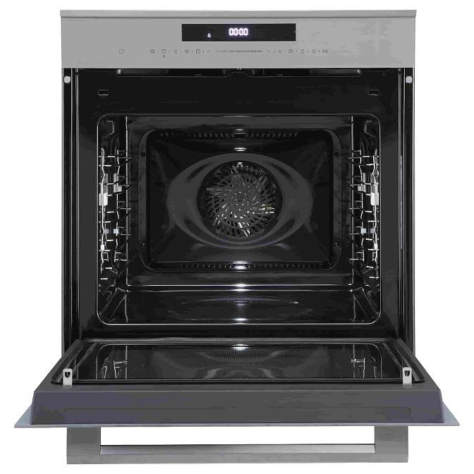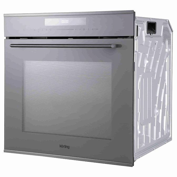 Дизайн выполнен в современном стиле: лаконичный серый корпус с хромированной фурнитурой и аккуратной ручкой AutoDoor, открывающейся по нажатию сенсорной кнопки, придаёт кухонному интерьеру аристократичную сдержанность. Фронтальная панель оснащена LED-дисплеем IconLED и сенсорными элементами управления в сочетании с инновационным переключателем CircleSlider, что обеспечивает интуитивное управление и точную настройку режимов. Тройное стекло дверцы сохраняет тепло и обеспечивает холодную поверхность снаружи, а конструкция дверцы разборная и откидная упрощает уход и обслуживание.