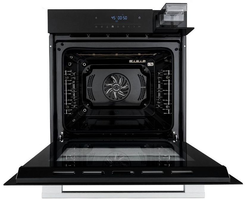 - Емкая камера 66 литров и пять уровней приготовления с телескопическими направляющими для удобства работы с большими объемами.