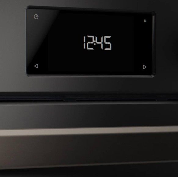 Элегантный корпус в матовом черном цвете превращает кухонное пространство в стильную зону, где функциональность сочетается с итальянским дизайном. Передняя панель дополнена черными металлическими поворотными переключателями и аккуратной металлической ручкой дверцы, а TFT-дисплей обеспечивает интуитивное управление режимами и таймером. Откидная дверь с двумя стеклами и съемным внутренним стеклом работает мягко благодаря доводчику, а внутреннее освещение выполнено галогенным светом для равномерной подсветки блюда во время приготовления.