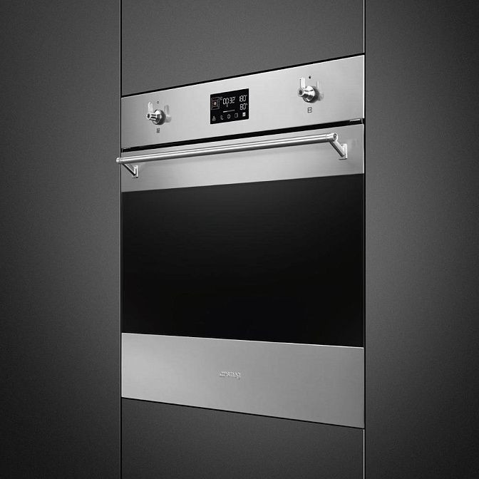 Духовой шкаф Smeg SO6302S3PX — это высококачественная модель, которая сочетает в себе элегантный дизайн и передовые технологии. Он выполнен в стильном черном цвете, который идеально впишется в любой интерьер. Корпус изготовлен из нержавеющей стали, что гарантирует долговечность и простоту в уходе. Фронтальная поверхность шкафа выполнена из стекла, что придает ему современный и стильный вид.