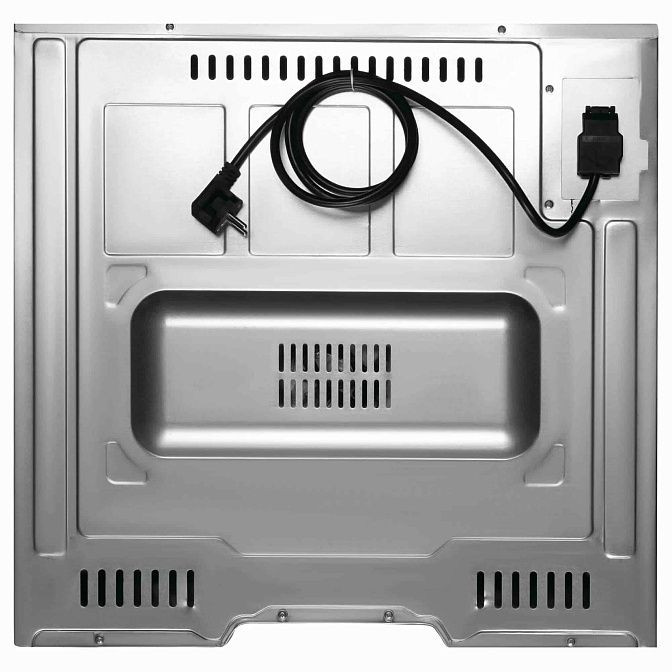 Внутреннее пространство объемом 60 литров позволяет размещать крупные противни, а комплект поставки включает два противня — плоский и глубокий — для выпечки и запекания. Эмалевое покрытие легкой очистки вместе с каталитическими элементами упрощает уход: остатки жира и пригоревшие частицы устраняются быстрее, что снижает необходимость применения агрессивных моющих средств. Хромированные съемные направляющие облегчают извлечение решеток и чистку, а одна лампа накаливания обеспечивает комфортную подсветку камеры во время готовки.