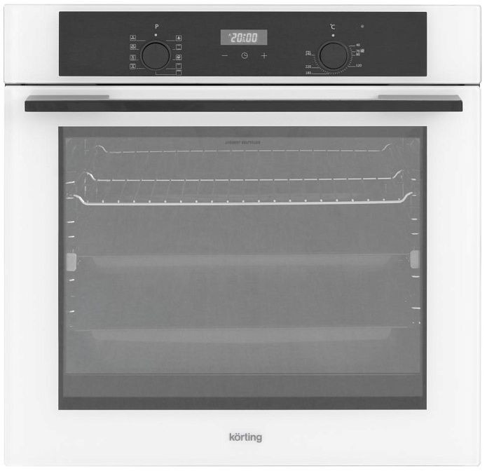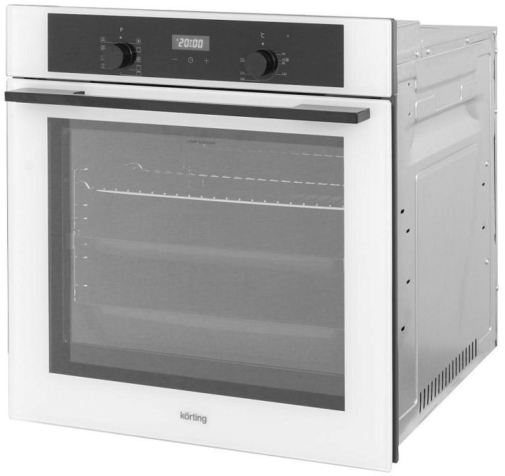 Элегантный корпус в белом цвете с фронтальной стеклянной поверхностью и черной ручкой придает кухонному ансамблю аккуратный и современный облик, а продуманная глубина и стандартные габариты 595x595x587 мм позволяют вписать прибор в нишу размером 600x560x550 мм без лишних переделок. Откидная дверца с холодным внешним стеклом и съемным внутренним полотном обеспечивает комфорт при обслуживании и безопасность при эксплуатации, а встроенные часы и LED дисплей делают управление интуитивно понятным. Материалы регуляторов — полиамид и металл — обеспечивают долговечность кнопок и стильный контраст на фасаде; утапливаемые сенсорные переключатели и сенсорное управление дисплеем подчеркивают современную концепцию управления и упрощают настройку параметров.