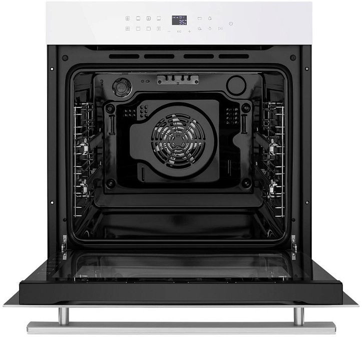 Современный встроенный белый духовой шкаф выполнен в лаконичном стиле: металлический корпус с оформлением стеклом создает аккуратный визуальный акцент, а утапливаемые поворотные регуляторы и сенсорные элементы управления гармонично сочетают удобство с минимализмом. Большая объемная камера на 76 литров обеспечивает пространство для крупногабаритных блюд и многослойного запекания, при этом внутреннее покрытие из _ko-эмали и эмаль легкой очистки упрощают уход: жир и пригоревшие остатки удаляются быстрее, чем на традиционных поверхностях. Трехслойное внутреннее стекло дверцы и холодная конструкция внешней поверхности повышают безопасность при эксплуатации, а съемная дверца облегчает полноценную чистку.