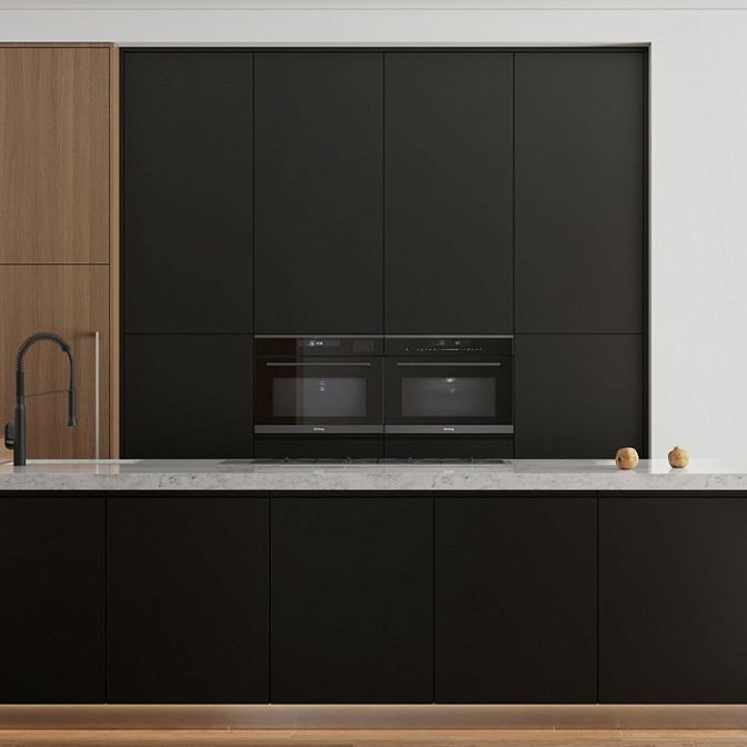 - Интуитивное управление: сенсорный дисплей, утапливаемые регуляторы и программатор для точной настройки времени и температуры.