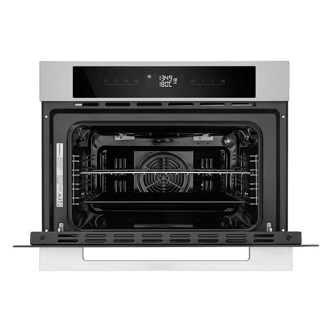 Маунфелд AMCO458S оснащен сенсорными переключателями и таймером для более точного контроля над процессом приготовления. Есть несколько режимов работы, включая предварительный разогрев, верхний и нижний нагрев с циркуляционным вентилятором, а также режим быстрой выпечки. Конвекция и гриль также доступны, что позволяет готовить разнообразные блюда.