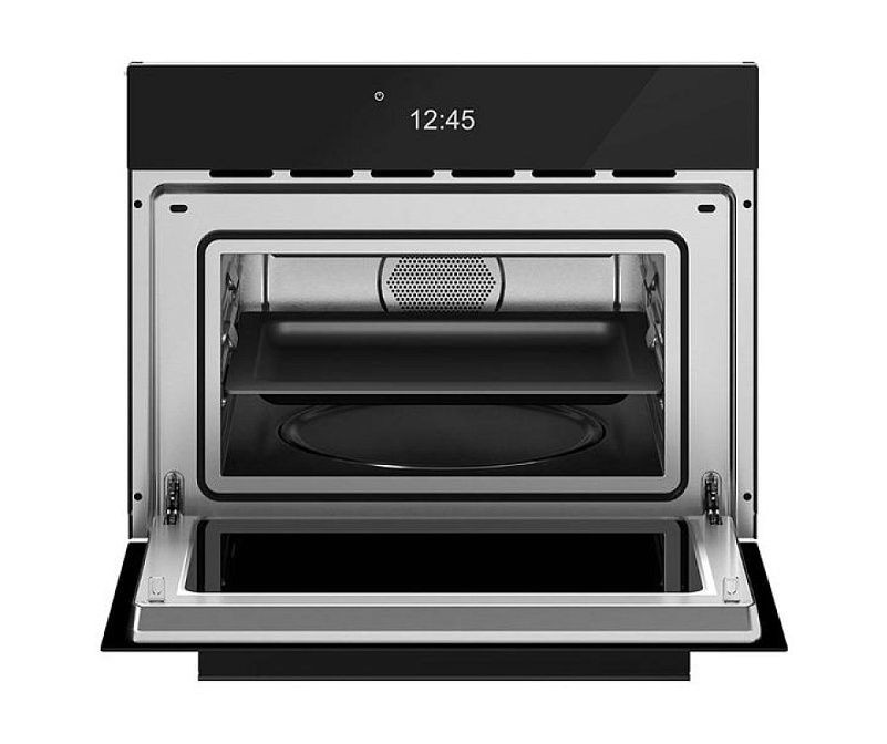 Строгая геометрия и глубокий черный тон стекла создают выразительный акцент на кухне, сочетая минимализм и премиальную эстетику. Плоская фасадная поверхность визуально увеличивает пространство и подходит для встраивания в мебель с шириной 59,5 см; высота 38,8 см и глубина 40,1 см делают корпус компактным, но вместительным. Внутренний объем 25 л размещает стандартную посуду, а диаметр поворотного стола 31,5 см оптимизирован для равномерного прогрева. Корпус и камерная поверхность выполнены с применением нержавеющей стали внутри, что обеспечивает долговечность, простоту ухода и устойчивость к пятнам, сохраняя презентабельный вид при регулярном использовании.
