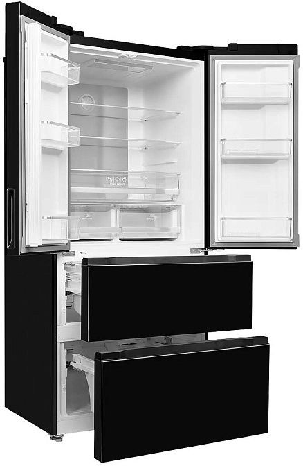 Элегантный черный корпус с фронтальной металлической панелью подчеркивает современный стиль и внушает ощущение надежности: матовый метал отлично сочетается с геометрией ровных линий и аккуратно вписывается в интерьер любой кухни. Высота 183 см при ширине 59 см и глубине 52 см обеспечивает вместительность без излишней громоздкости, а перевешиваемые двери с возможностью изменения шарнира дают свободу при установке в ограниченном пространстве. Внутреннее убранство организовано рационально: стеклянные полки выдерживают ежедневную нагрузку, шесть полок на дверце и два выдвижных ящика в зоне свежести предоставляют удобные места для хранения мелких и крупных продуктов. Зона свежести с регулировкой влажности и объемом 25 литров позволяет продлить срок хранения овощей и фруктов, а отдельные секции морозильника с четырьмя выдвижными отделениями упрощают разложение заготовок и быструю навигацию по продуктам.