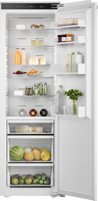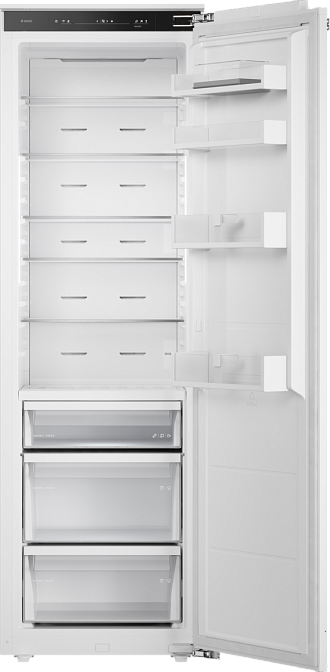 Элегантный встраиваемый агрегат в белом корпусе сочетает строгие линии и продуманную эргономику, позволяя органично вписаться в любой кухонный гарнитур. Высокая дверь с возможностью перевешивания облегчает монтаж и эксплуатацию, а компактные внешние габариты (185x59x59 см) и точные размеры 1772x557x545 мм делают модель удобной для установки даже в ограниченном пространстве. Декоративная минималистичная панель с LED дисплеем и сенсорным управлением расположена на корпусе, что обеспечивает быстрый доступ к настройкам и информативную индикацию текущей температуры.