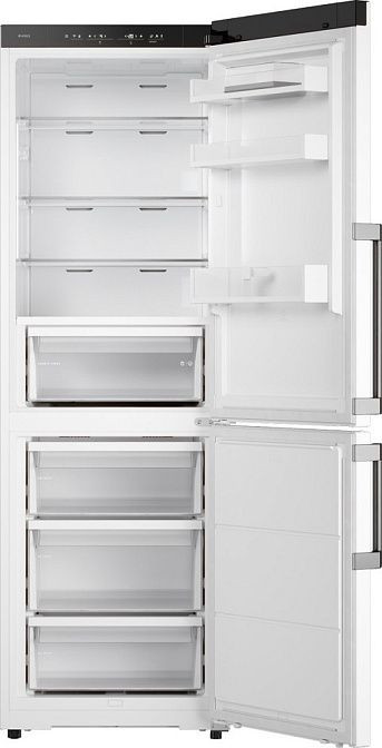 Этот агрегат сочетает современный минимализм и продуманную функциональность: белая металлокорпусная отделка и фронтальная панель из металла создают эффект строгой элегантности, который легко интегрируется в кухонный интерьер. Габариты 185x59x59 см делают прибор визуально компактным, при этом внутренняя организация рассчитана на большие запасы продуктов; дверной упор по умолчанию — слева, при этом конструкция дверей перевешиваемая для удобства при монтаже и изменении планировки. Масса устройства около 75 кг обеспечивает устойчивость, а расположение панели управления за дверью сохраняет чистые внешние линии и защищает электронные элементы от случайного касания.