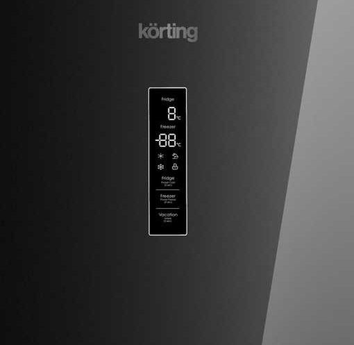 Управление реализовано через сенсорную панель с цифровым дисплеем на дверце: выбранные параметры и режимы отображаются на индикации, есть регулировка температур в холодильном и морозильном отсеках, а также функции Суперзаморозка и Суперохлаждение для оперативного сохранения свежести и структуры сырья. Режим «Отпуск» помогает экономить электроэнергию при длительном отсутствии, функция быстрой заморозки сокращает время обработки свежих партий, а опции «Задержка включения» и «Отключение памяти» добавляют удобства при эксплуатации. Электронная система контроля обеспечивает защиту от детей и звуковой сигнал открытой двери.