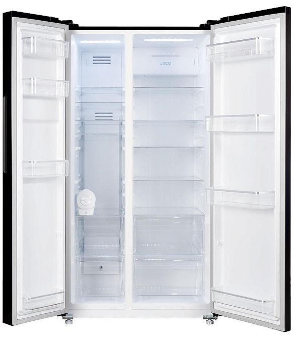 Продуманная планировка внутри предоставляет общий объем 559 л, из которых холодильная секция занимает 356 л, а морозильная — 203 л, с полезной емкостью, достаточной для крупной семьи или приема гостей. На стеклянных выдвижных полках и в 8 отделениях дверей удобно размещать посуду, контейнеры и бутылки; есть специализированная подставка для яиц и лоток для льда. Для любителей коллекций предусмотрены отсеки для хранения до 56 бутылок и отдельный блок на 30 штук в предназначенном месте.