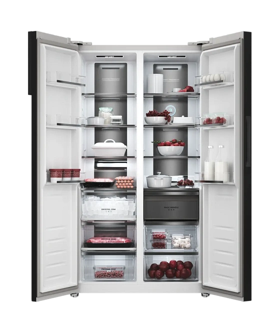 Особенностью данной модели является электронная система управления с сенсорными кнопками. Холодильник оснащен функциями суперохлаждения и суперзамораживания, что позволяет быстро охладить или заморозить продукты. В морозильной камере расположены 3 ящика, что позволяет удобно разместить продукты. Важной особенностью является наличие антибактериального покрытия камеры, что обеспечивает безопасность хранения продуктов.