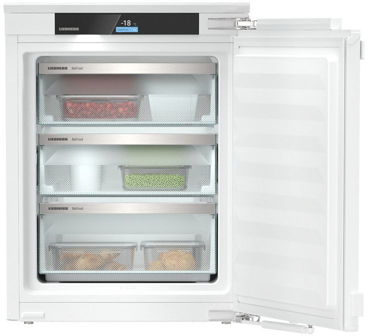 Морозильное отделение с No Frost исключает обязательную разморозку, а холодильная камера оснащена капельной системой размораживания. Регулировка температур в обеих камерах и автономное сохранение холода до 24 часов повышают удобство в непредвиденных ситуациях; индикаторы состояния сообщают о показаниях температур, открытых дверцах и сбоях питания. Управление вынесено на корпус и реализовано через TFT-дисплей с сенсорными переключателями, дополненное таймером и встроенными часами. Функции безопасности включают защиту от детей и звуковой сигнал открытого полотна.