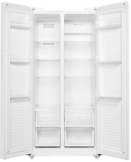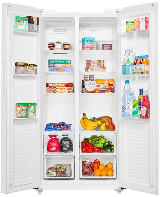 Стильная и вместительная модель Side-by-Side предлагает современное решение для большой семьи и тех, кто ценит порядок и надежность. Монолитный белый корпус с фронтом из металла и встроенной ручкой обеспечивает аккуратный внешний вид и возможность установки вплотную к стене; продуманная Slim Design экономит пространство при сохранении внушительного полезного объема. Высота 177 см при ширине 83,3 см и глубине 63,7 см делает прибор заметным, но не громоздким элементом кухни, а прочные закаленные стеклянные полки выдерживают интенсивную эксплуатацию и легко очищаются.
