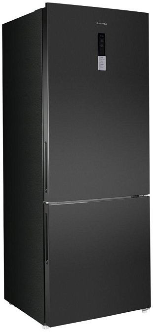 Строгий и современный образ техники сочетает черную нержавеющую сталь фронта с матовой металлической отделкой корпуса, создавая эффектную, но сдержанную внешность. Скрытые ручки и ровные поверхности подчеркивают минималистичный стиль, а вертикальная панель управления с сенсорными кнопками на дверце добавляет визуальной легкости и удобства в эксплуатации. Продуманная компоновка при габаритах 185,5x70,3x70,3 см обеспечивает внушительный полезный и общий объем для хранения продуктов, при этом прибор остается отдельно устанавливаемым и легко интегрируется в разные кухонные решения благодаря перевешиваемым дверцам и регулируемым ножкам.