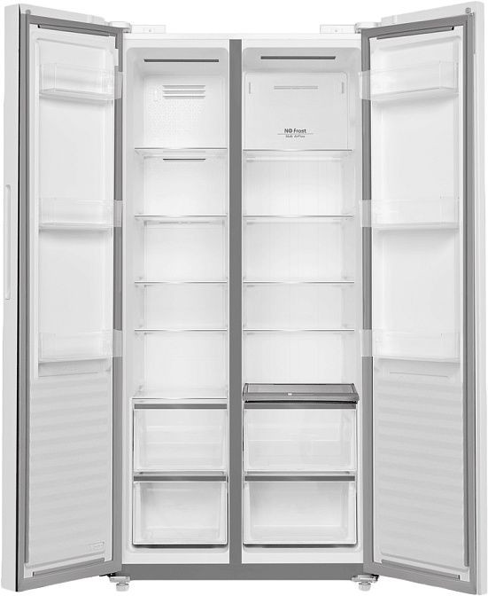 Холодильник Maunfeld MFF191NFPW — это высококачественное устройство, объединяющее в себе современные технологии и стильный дизайн. С белым металлическим корпусом и встроенными ручками, он идеально вписывается в любой интерьер. Габариты устройства (191x95,5x63,5 см) позволяют разместить его даже в небольших помещениях, а его общий объем в 683 литра обеспечивает достаточное пространство для хранения продуктов.