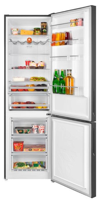 - Емкость 435 л с продуманной внутренней компоновкой, выдвижными стеклянными полками и зоной влажности для длительного сохранения свежести.