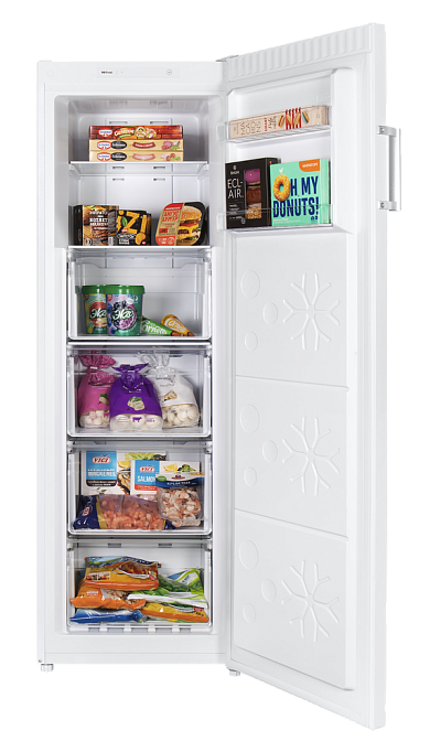 Внутреннее пространство морозильной камеры Манфелд MFFR170W содержит вместительные ящики и полки, как в основном отделении, так и на дверце, что позволяет организовать раздельное хранение продуктов. В комплектацию входит емкость для замораживания льда.