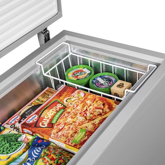 Морозильный ларь Maunfeld MFL200GR — оптимальное решение для качественного замораживания и хранения продуктов, объемом 199 литров. Отдельностоящий прибор можно легко переместить с места на место. Его параметры составляют: высота — 82 см, ширина — 98 см, глубина — 56 см. Устройство оборудовано одной вместительной камерой и навесной корзиной, которая обеспечивает дополнительное удобство при расположении продуктов.