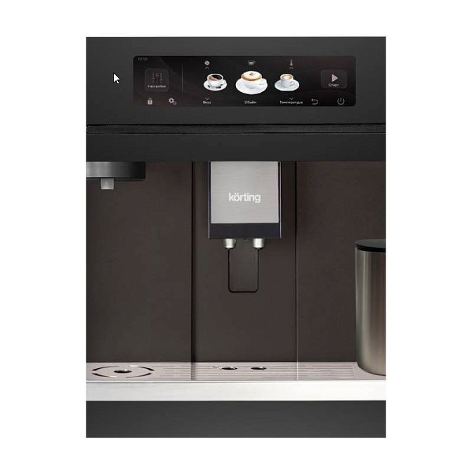 Сдержанный графитовый корпус в духе модерн делает эту встраиваемую модель не просто функциональным прибором, а стильным элементом кухонного гарнитура. Комбинация металла и пластика обеспечивает прочность при аккуратном внешнем виде, а сенсорное управление с дисплеем и дисковый SMART джойстик дают интуитивный доступ ко всем опциям. Конструкция рассчитана на встраивание в нишу 452x568x550 мм, при этом габариты 45.5x59.5x40.5 см и глубина корпуса 43.3 см позволяют легко интегрировать аппарат в мебель с учетом выдвижного отсека для кабеля и расположения резервуара сзади.