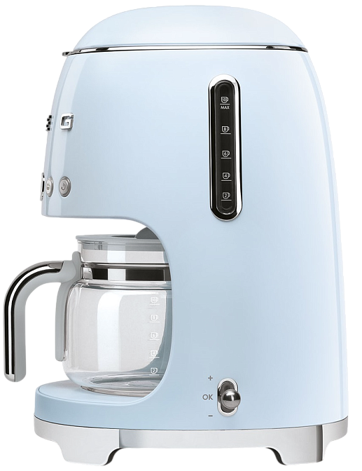 Кофеварка Smeg DCF02PBEU представляет собой идеальное сочетание элегантного дизайна и высокой функциональности. Эта модель выполнена в стиле 50-х годов, что придает ей неповторимый шарм и позволяет вписаться в любой интерьер. Пастельный голубой цвет корпуса, сделанного из металла и пластика, подчеркивает ее изысканность и стиль.