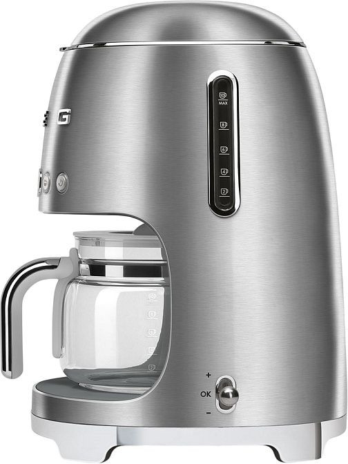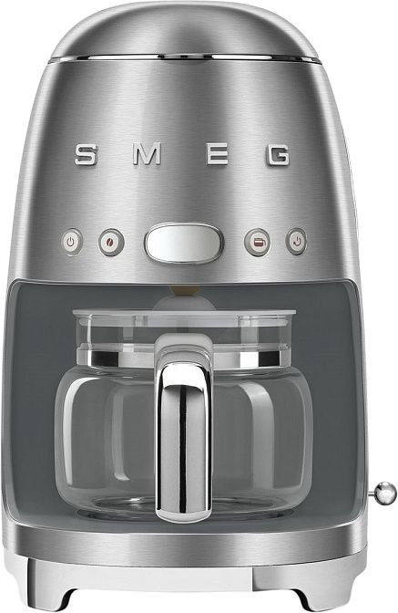 Кофеварка SMEG DCF02SSEU — это стильное и функциональное устройство, которое станет незаменимым помощником для любителей кофе. Дизайн кофеварки выполнен в стиле 50-х годов, что придаёт ей особую эстетическую привлекательность и позволяет вписаться в любой интерьер. Корпус изготовлен из комбинации металла и пластика, что обеспечивает долговечность и надёжность устройства. Цвет нержавеющей стали придает ей современный и элегантный вид.