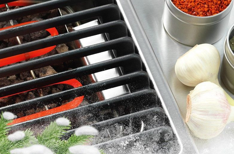 Miele CS1312 BG — встраиваемый электрогриль из нержавеющей стали. Модель оборудована двумя независимыми нагревательными элементами, которые регулируются поворотными переключателями. Индикатор мощности нагрева способствует безопасной эксплуатации. Модель имеет 12-ступенчатую регулировку температуры. Для удобства использования панель поставляется с щеткой для чистки и лавовыми камнями.