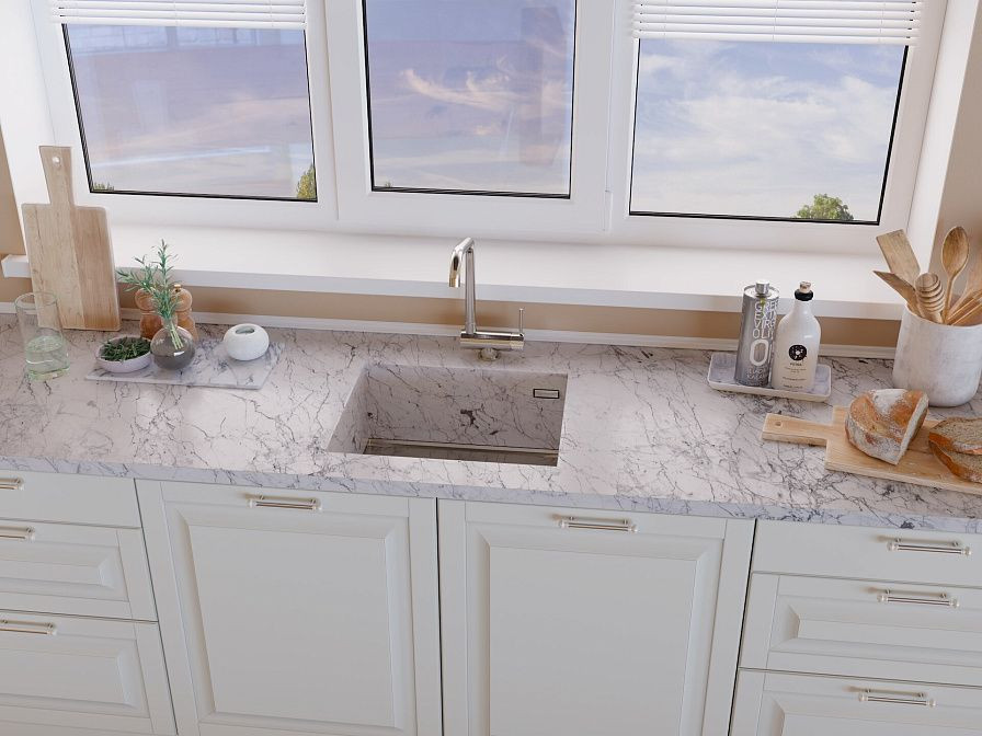 Особенностью мойки является система сменных модулей V-Complex, которая обеспечивает глубокую, предварительную и окончательную очистку. В комплекте с мойкой идут крепления для монтажа, сливная арматура с переливом и сифон.