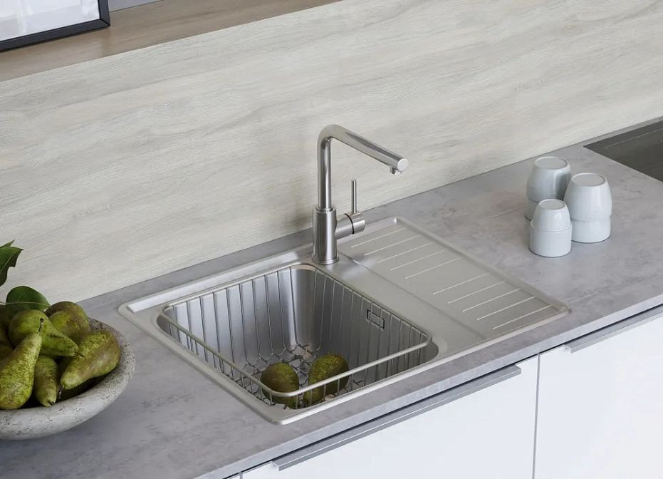 Материал мойки — нержавеющая сталь толщиной 1,2 мм, что гарантирует ее долговечность и устойчивость к коррозии. Поверхность мойки имеет матовое покрытие, которое придает ей элегантный вид и облегчает уход за ней. Также мойка имеет шумоподавляющее покрытие, что делает ее использование более комфортным.