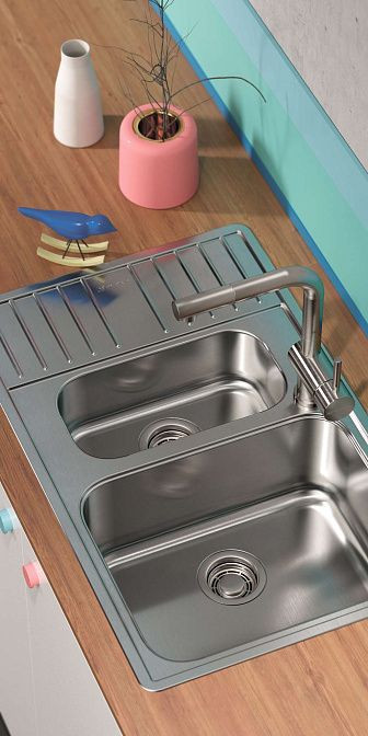 Материал мойки — нержавеющая сталь — обеспечивает высокую износостойкость изделия. Это гарантирует его долгий срок службы и сохранение привлекательного внешнего вида. Благодаря декоративному корзинчатому элементу и декоративной накладке на сливное отверстие, мойка выглядит стильно и элегантно.