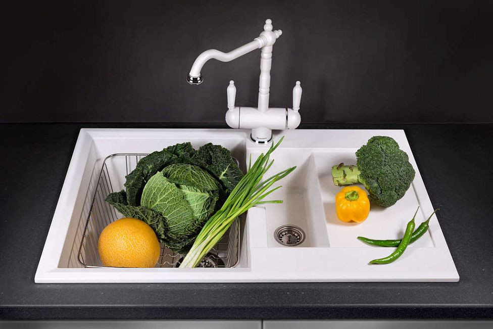 - Функциональность и удобство использования за счет двух чаш и сливных желобков.