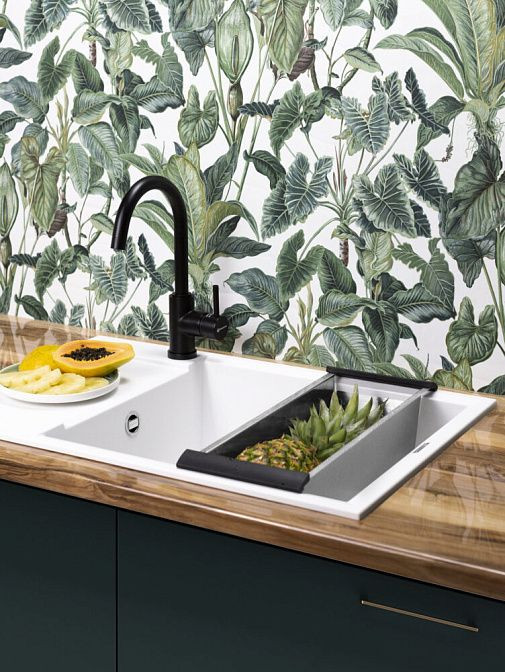 В комплект поставки входят комплект крепежа, перелив, сифон и сливная арматура. Мойка устанавливается врезным способом в столешницу из искусственного камня. Для установки мойки необходима база шириной 60 см.