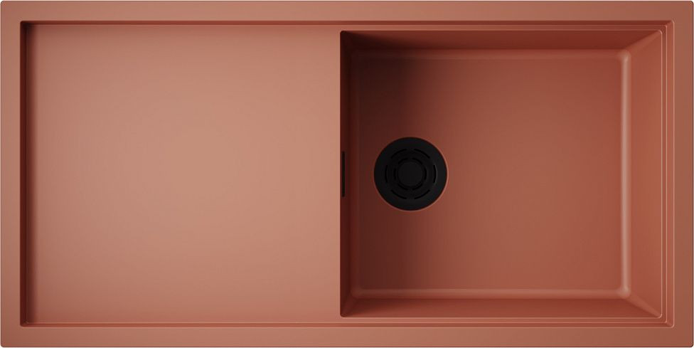 Основная чаша 470x419x200 мм + вторая чаша 980x480x200 мм обеспечивают максимальную функциональность. Диаметр слива 90 мм с креплением для сифона. Оборачиваемое крыло со сливными желобками создает удобную рабочую зону.