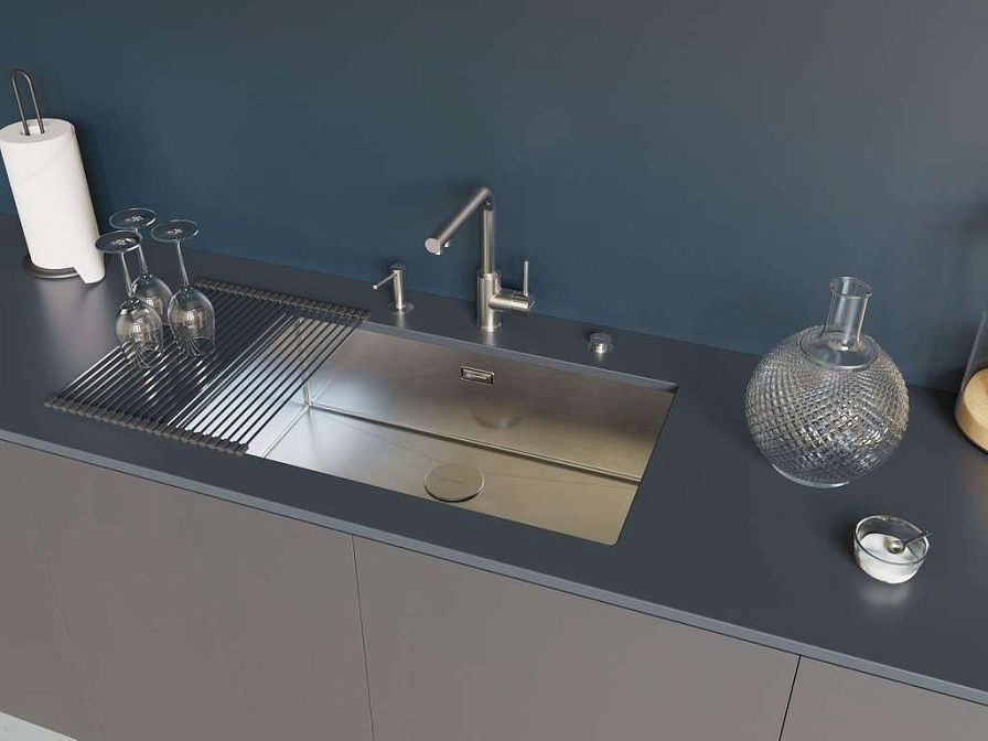 Глубокая рабочая чаша размером 700x400x200 мм предназначена для профессионального использования: вмещает противни 45x35 см, кастрюли до 6 литров, высокие бокалы, формы для запекания. Лучи-направляющие на дне ускоряют слив воды на 35%, исключая застой. NANO-PVD покрытие отталкивает воду, жиры, пигменты — поверхность остается чистой без разводов. Центральный выпуск диаметром 90 мм совместим с измельчителями от InSinkErator. Ручная сварка обеспечивает полную герметичность швов без микротрещин.
