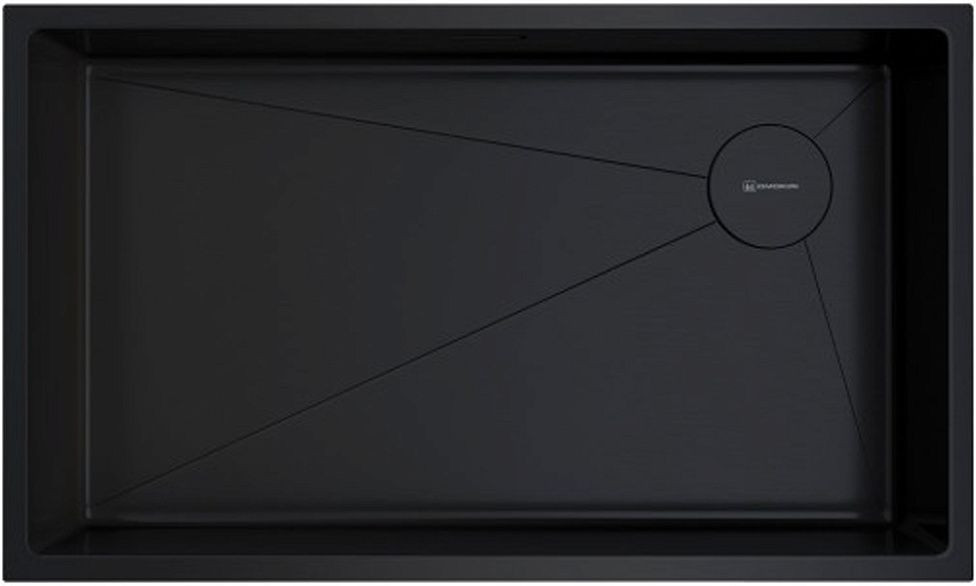 Рабочая чаша размером 700x400x200 мм рассчитана на интенсивное использование: вмещает противни 45x35 см, кастрюли до 6 литров, высокие бокалы и формы для выпечки. Лучи-направляющие на горизонтальном дне ускоряют слив воды на 40%, исключая лужи и застой. NANO-покрытие активно отталкивает воду, жиры, пигменты — капли скатываются самостоятельно. Выпускной клапан диаметром 90 мм расположен сбоку, освобождая центральную зону для измельчителя или системы хранения. Полная герметичность швов гарантирована вакуумной сваркой.