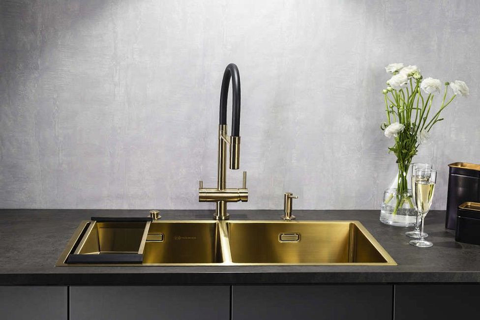 Компактные 2 чаши оптимизируют рабочее пространство. Сочетается с современными стилями. Уход: мягкая губка + средства для нержавейки.
