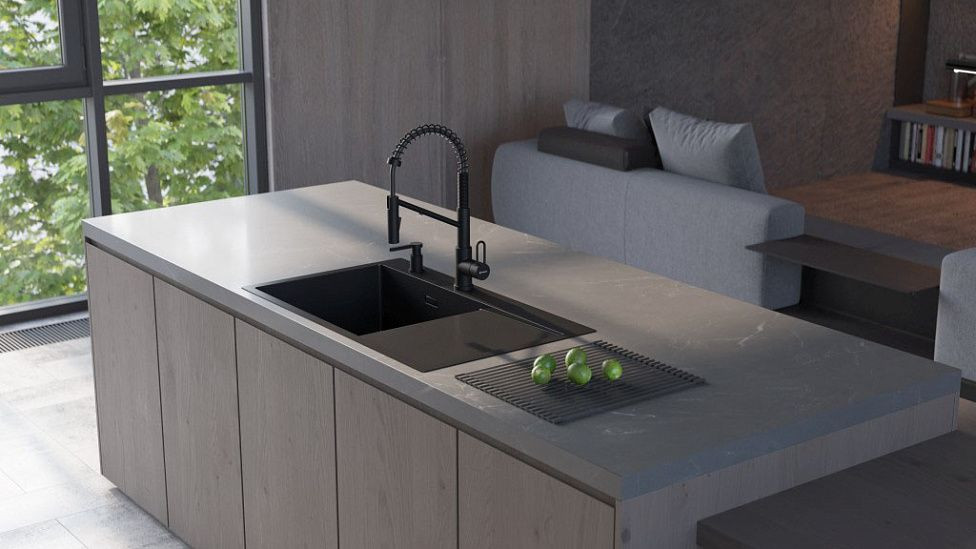 Элегантный прямоугольный дизайн выделяется современным графитовым оттенком и тонким PVD_покрытием, которое устойчиво к износу и придает поверхности благородный матовый блеск. Корпус изготовлен из нержавеющей стали с толщиной материала 1,2 мм, что обеспечивает длительную службу и стабильную геометрию чаши при интенсивной эксплуатации. Встроенная сверху установка позволяет органично вписать изделие в рабочую поверхность, а декоративная накладка на сливное отверстие завершает аккуратный вид.