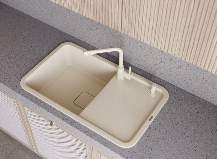 Мойка изготовлена из искусственного камня, что обеспечивает ей долговечность и высокую устойчивость к повреждениям. Матовое покрытие придает мойке элегантный внешний вид и облегчает уход за ней. Ванильный цвет мойки прекрасно смотрится в любом интерьере, добавляя в него теплоту и уют.