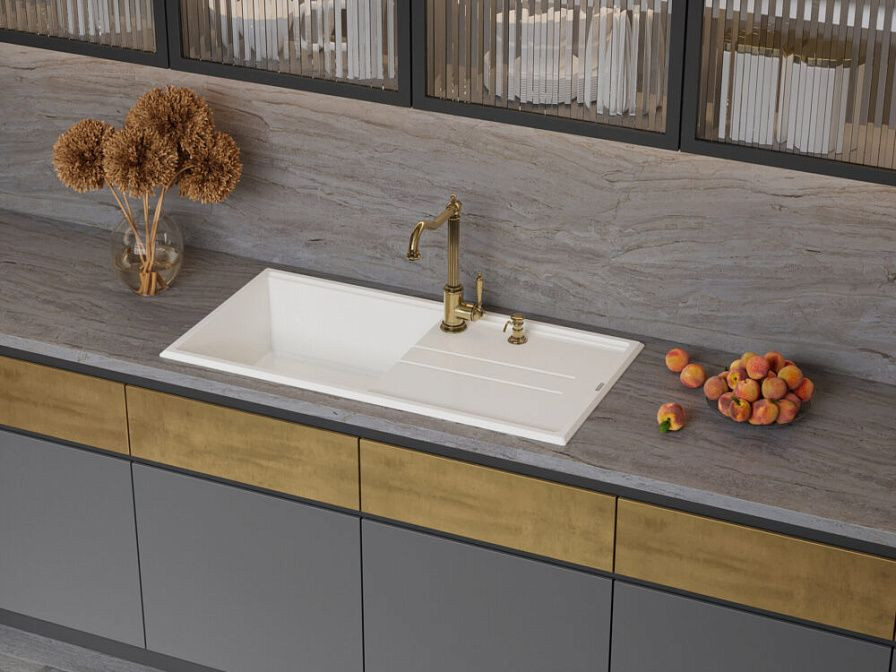 Материал мойки — TetoGranit, который отличается своей прочностью и долговечностью. Толщина мойки составляет 10 мм, что гарантирует ее надежность и стабильность. Также данная модель обладает антибактериальной защитой, что делает ее еще более безопасной для использования.