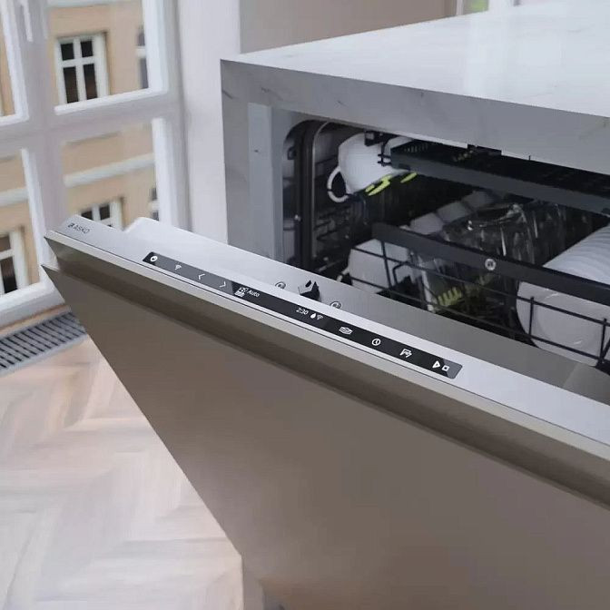 - Гибкая загрузка на 14 комплектов, регулируемые корзины и автоматическое открывание двери ускоряют сушку и упрощают укладку посуды.