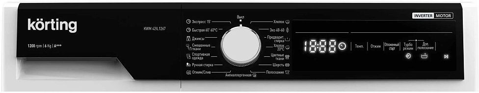 - Удобный цифровой дисплей и комбинированное управление позволяют точно задавать температуру, скорость отжима и отсрочку старта до 24 часов.