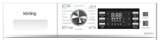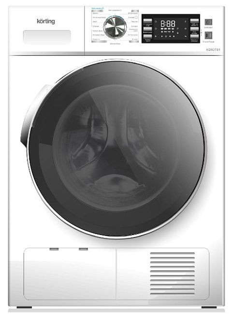 Сушильная машина Korting KD-60T81 создана для тех, кто ценит сочетание сдержанного швейцарского стиля и продуманной функциональности. Внешний вид устройства основан на дизайне AdoraDry V2000: прямая конструкция дверцы, белая цветовая гамма корпуса и дверцы люка, акриловая панель управления черного оттенка с LED-дисплеем делают прибор аккуратным и универсальным для любого интерьера. Панель оснащена поворотными регуляторами, сенсорными кнопками и механическими клавишами для особых функций, что обеспечивает быстрый и интуитивный доступ к настройкам. Диаметр загрузочного люка почти 50 см упрощает загрузку объемных предметов, а внутренняя подсветка барабана и реверсивное вращение бережно обращаются с текстилем, снижая риск заломов и сминания.