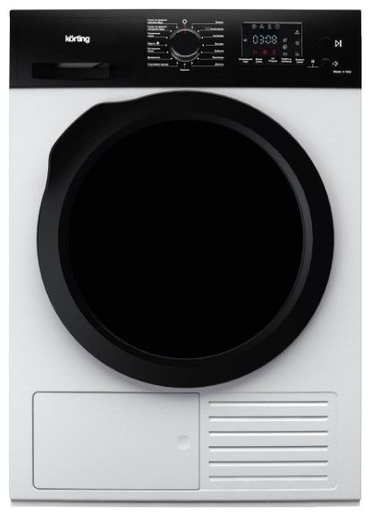 Набор программ включает основные режимы для хлопка, синтетики, деликатных материалов и специализированные циклы: джинсы, одеяла, полотенца, постельное белье, шерсть, спортивная одежда и опции сушки по времени — горячий и холодный обдув. Дополнительные опции предлагают быстрое высушивание, антисминание, режим проветривания, экспресс-обработку и программу «под утюг», а также возможность экстрасушки и подготовки вещей для шкафа. Для деликатной сушки предусмотрена съемная корзина-держатель, а при необходимости конденсат можно собирать в емкость объемом 6 л или подключить отвод в канализацию.