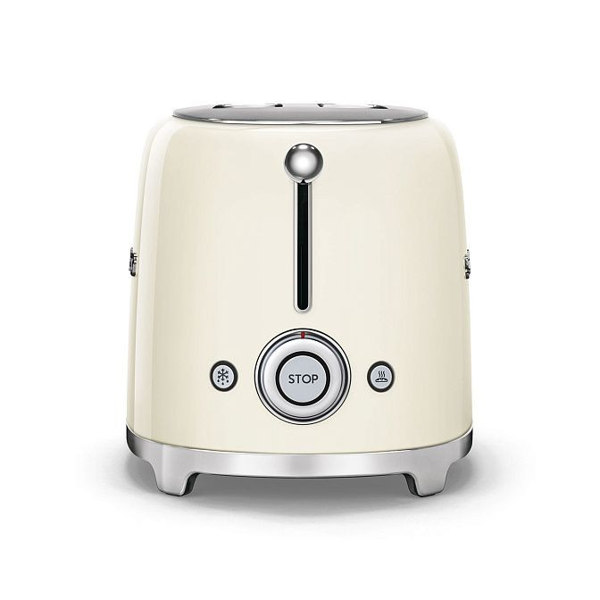 В корпусе, выдержанном в стиле 50-х годов, этот прибор становится не просто бытовым аксессуаром, а самостоятельным интерьерным элементом. Кремовый оттенок основания в сочетании с полированной хромированной отделкой верхней панели и рычага придают изделию благородство и визуальную лёгкость, благодаря чему аппарат эффектно смотрится на рабочей поверхности. Материал поддона для крошек — полированная нержавеющая сталь, сам корпус собран с применением качественной нержавеющей стали, что обеспечивает долговременную службу и простоту ухода. Фронтальная панель выполнена с подсветкой элементов управления, поворотный переключатель освещается, а кнопки снабжены деликатной подсветкой для удобства в условиях приглушённого света.