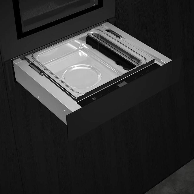 Дизайн упаковщика выполнен в строгом и современном стиле, что позволяет ему гармонично вписаться в любой интерьер. Отделка из высококачественного черного стекла придает ему особую элегантность и благородство. Управление упаковщиком осуществляется с помощью сенсорной панели, что делает его использование максимально удобным и простым.