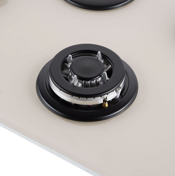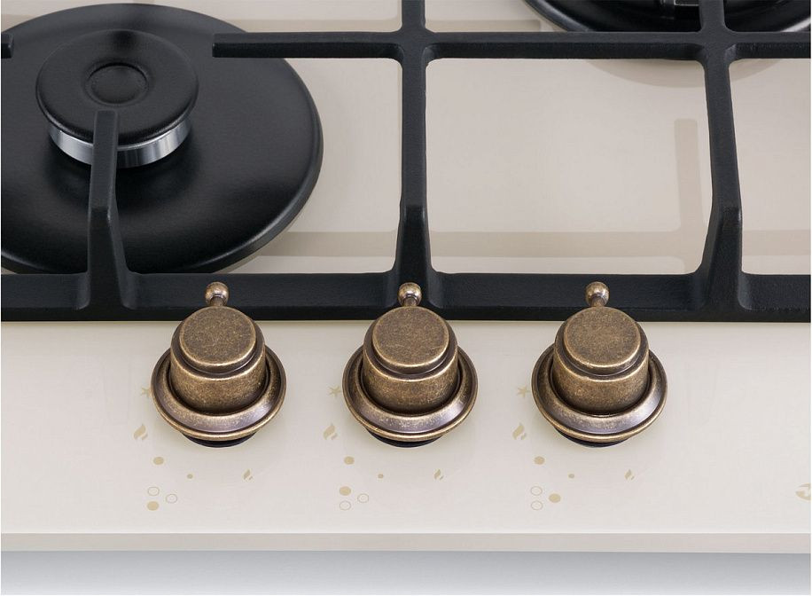 Для обеспечения безопасности в панели предусмотрен газконтроль. Если пламя гаснет, подача газа автоматически прекращается. Решетки из чугуна обеспечивают устойчивость посуды и долговечность панели.