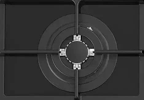 Поверхность оснащена четырьмя конфорками разного диаметра, включая специально усиленную WOK-зону и трехконтурную двойную корону для интенсивного нагрева больших кастрюль: размеры горелок — 123, 73,5, 73,5 и 53,7 мм. Мощностные показатели варьируются от 0,95 до 3,1 кВт, общая потребляемая мощность достигает 7,2 кВт (7450 Вт). Электроподжиг упрощает запуск пламени, газконтроль обеспечивает автоматическое перекрытие подачи в случае потухания, а функция автоматического отключения повышает безопасность при длительном отсутствии контроля.