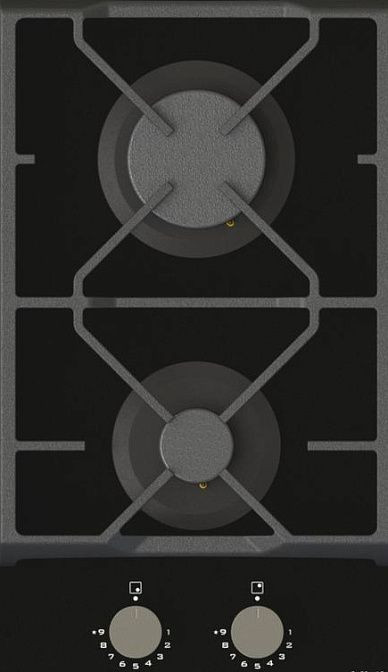- Стеклокерамическая поверхность в сочетании с чугунными решетками и металлическими регуляторами для долговечного и стильного исполнения.
